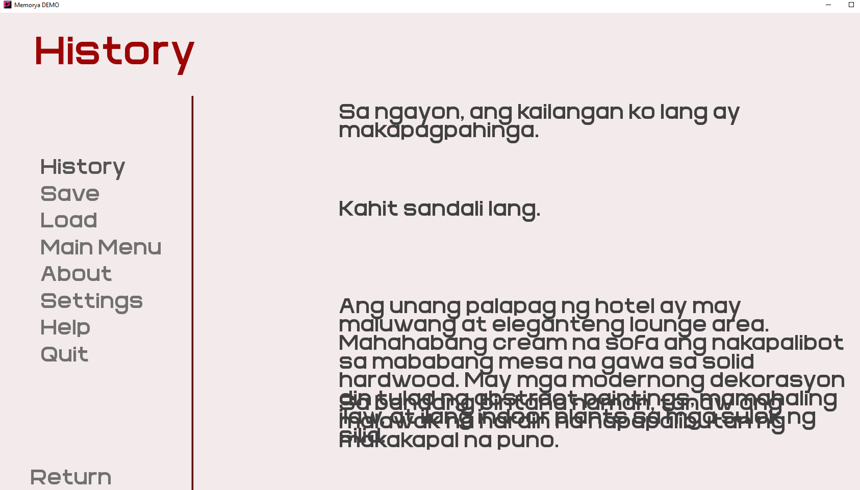 | Tags | english-translation, filipino, lazybrain, memorya, Otome, philippines, pinoy, tagalog, visualnovel, xlyn |